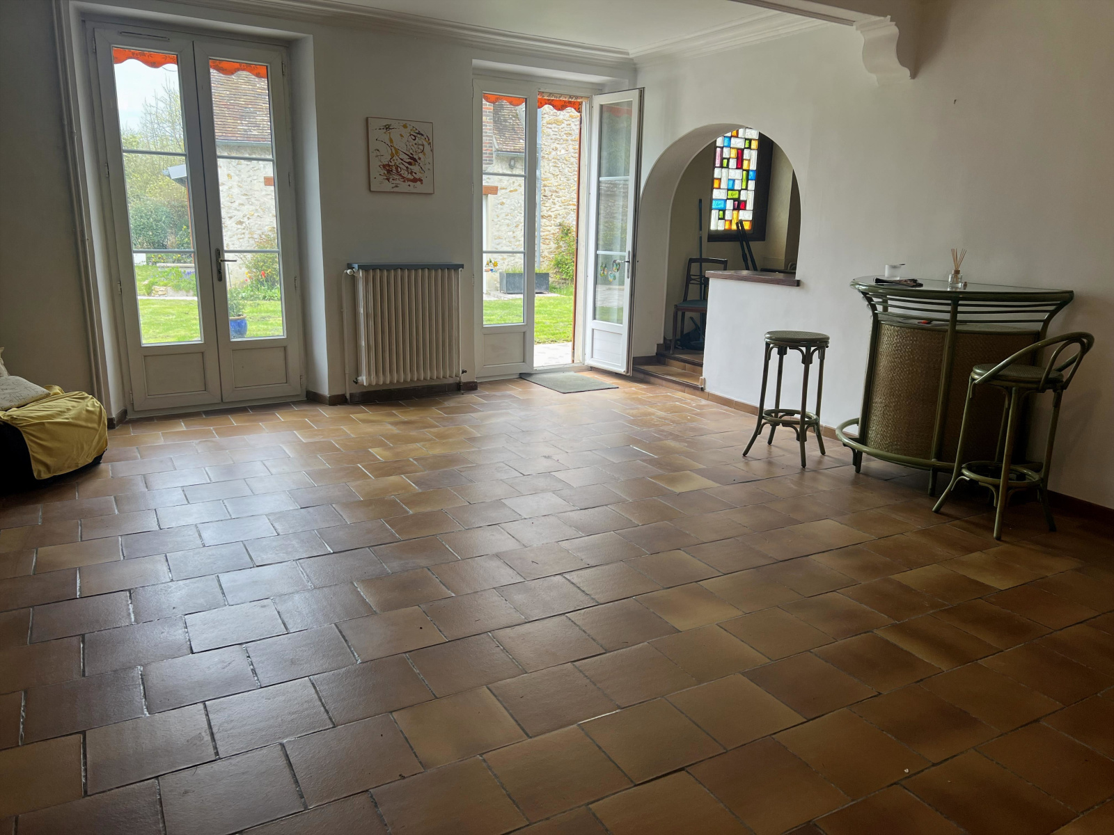 Belle maison de village en pierres comprenant : au RDC ,entrée, séjour salon,grande cuisine aménagée neuve, chambre, bureau ,salle d'eau wc