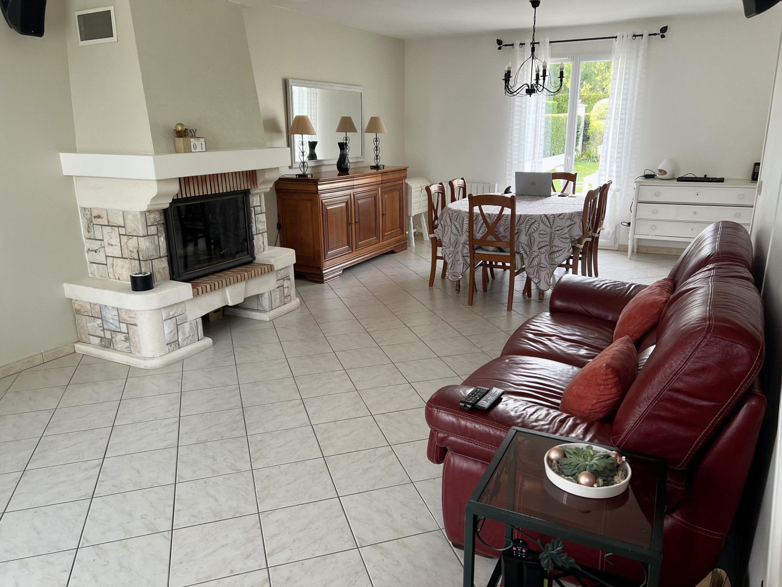 au RDC, entrée, séjour salon cheminée donnant sur terrasse, chambre-bureau avec salle d'eau ,penderie,wc
