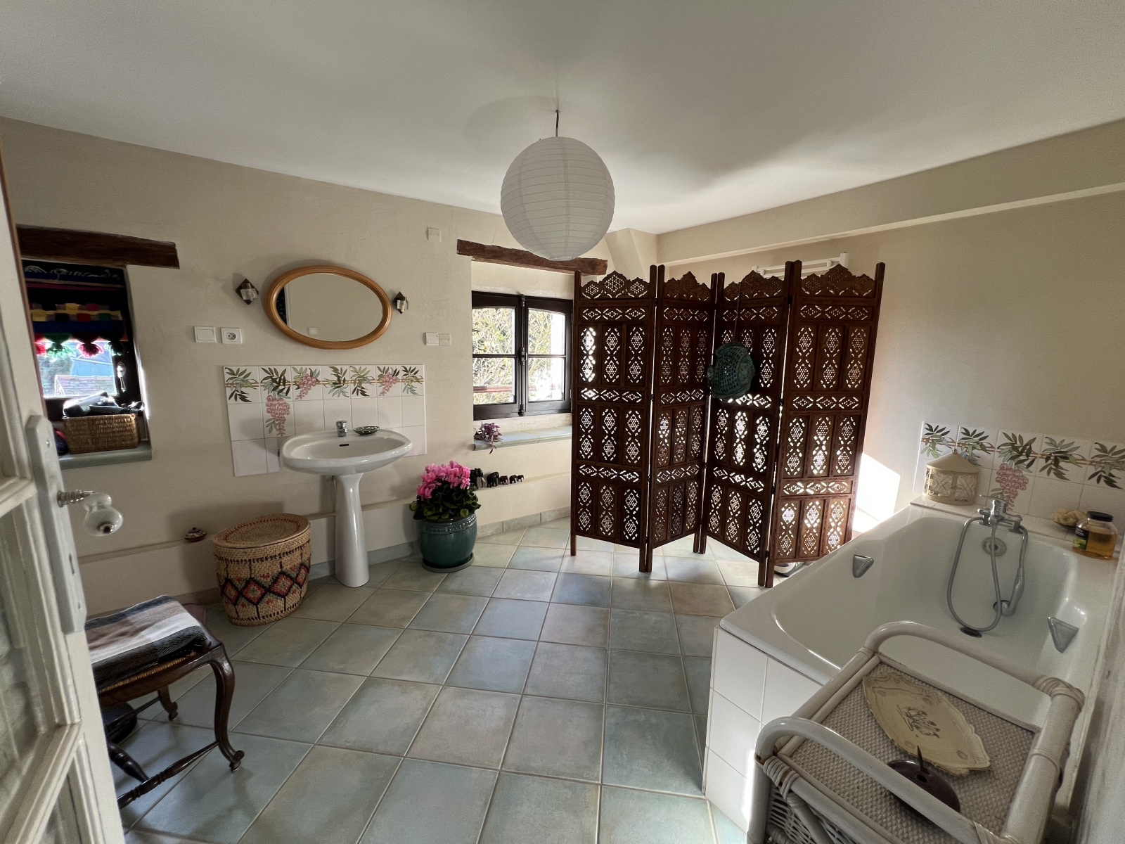 à l'étage grande chambre principale avec cheminée insert, 2 autres chambres, grande salle de bains , baignoire, douche et wc